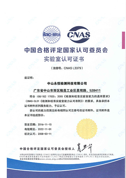 永恒檢測嚴(yán)格按照ISO/IEC 17025建立實驗室管理體系,獲得CMA(國家認(rèn)證認(rèn)可監(jiān)督管理委員會)認(rèn)證及CNAS(中國合格評定國家認(rèn)可委員會)認(rèn)可,所出具的檢測報告具有法律效力和國際公信力。